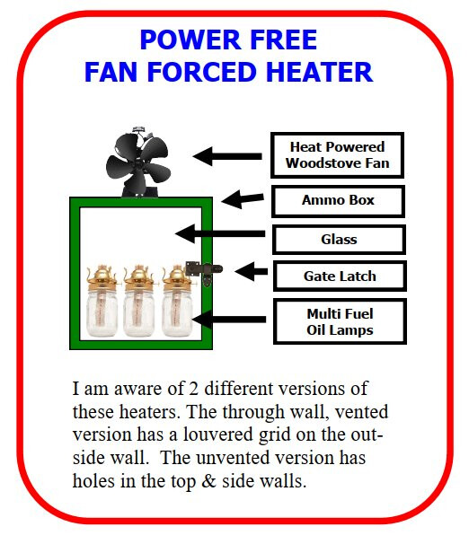 I’m also using veggie oil heaters, but mine are portable and don’t require holes in walls or roofs. They cost less than $10 to build DIY from dollar store parts, and about 15-20 minutes easy assembly. I use mine for both heating & cooking, and could use it for cooling as well. I add a $20 heat powered woodstove fan to have battery/electricity free fan forced heating.