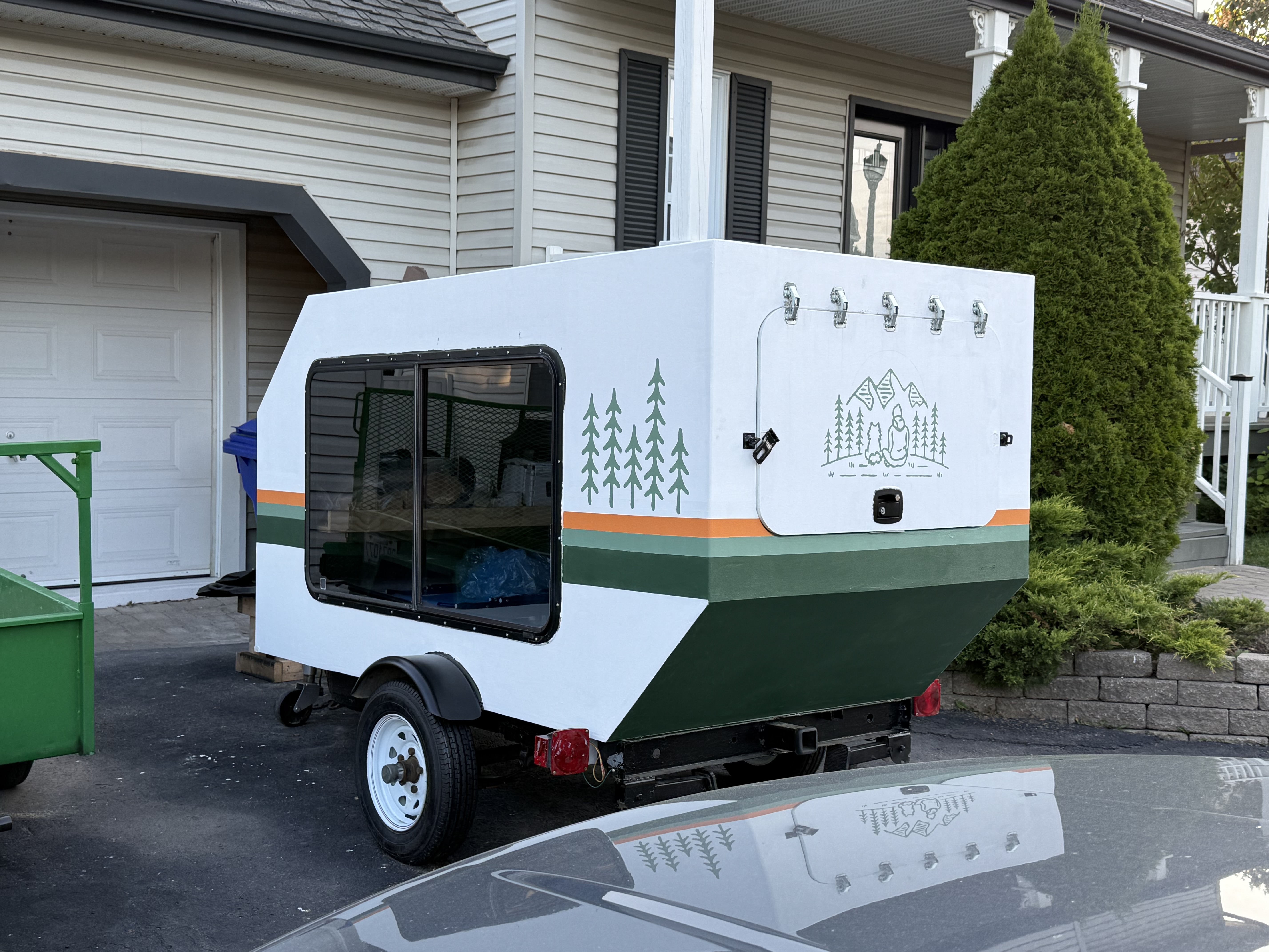 We purchased a DIY tear-drop style camper project from someone and put in the finishing touches.
