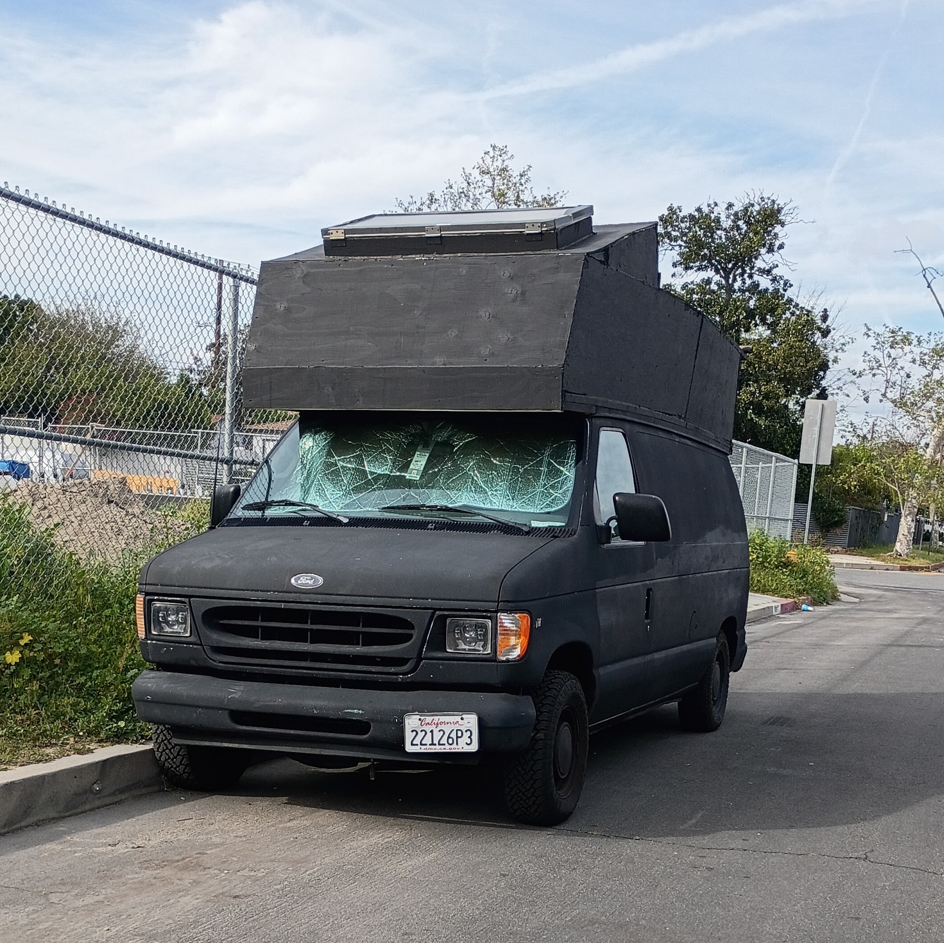 “The van was modified by its owner and later (when the vehicle became decrepit) abandoned or perhaps donated it to a homeless person who painted the vehicle black (matte) to be less conspicuous /visible in an urban area like Los Angeles and its suburban neighborhoods. “ – this is how I explained this van to my wife, who knows nothing about the operation and maintenance of vans but knows a thing or two about homelessness and van life from the marginalized people she encounters as a passionate social worker. She insists that the van in the picture (parked in our neighborhood) has nothing to do with homelessness or van life, but for “stealth work”.